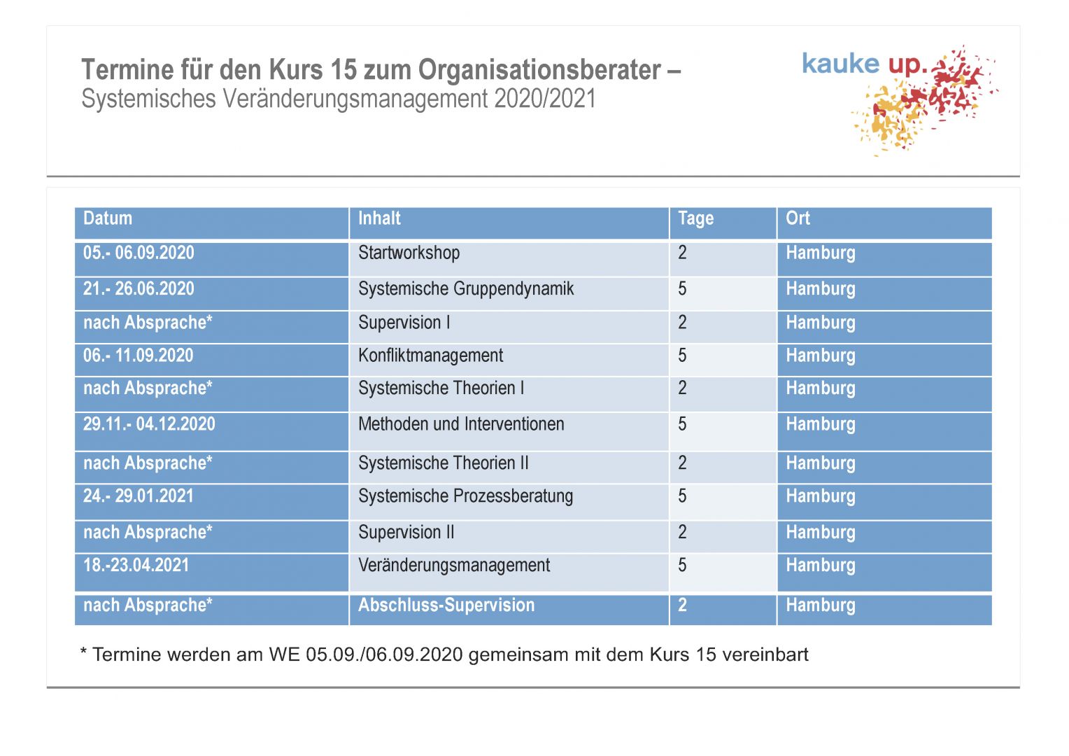 Systemisches Veränderungsmanagement Kursübersicht 2020/2021